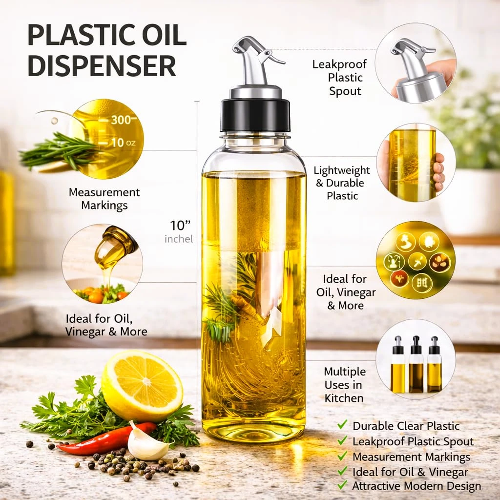 Perfect for everyday cooking, this bottle keeps your kitchen organized and mess-free. The durable plastic construction makes it lightweight yet strong, ideal for regular use in home kitchens or small food businesses.